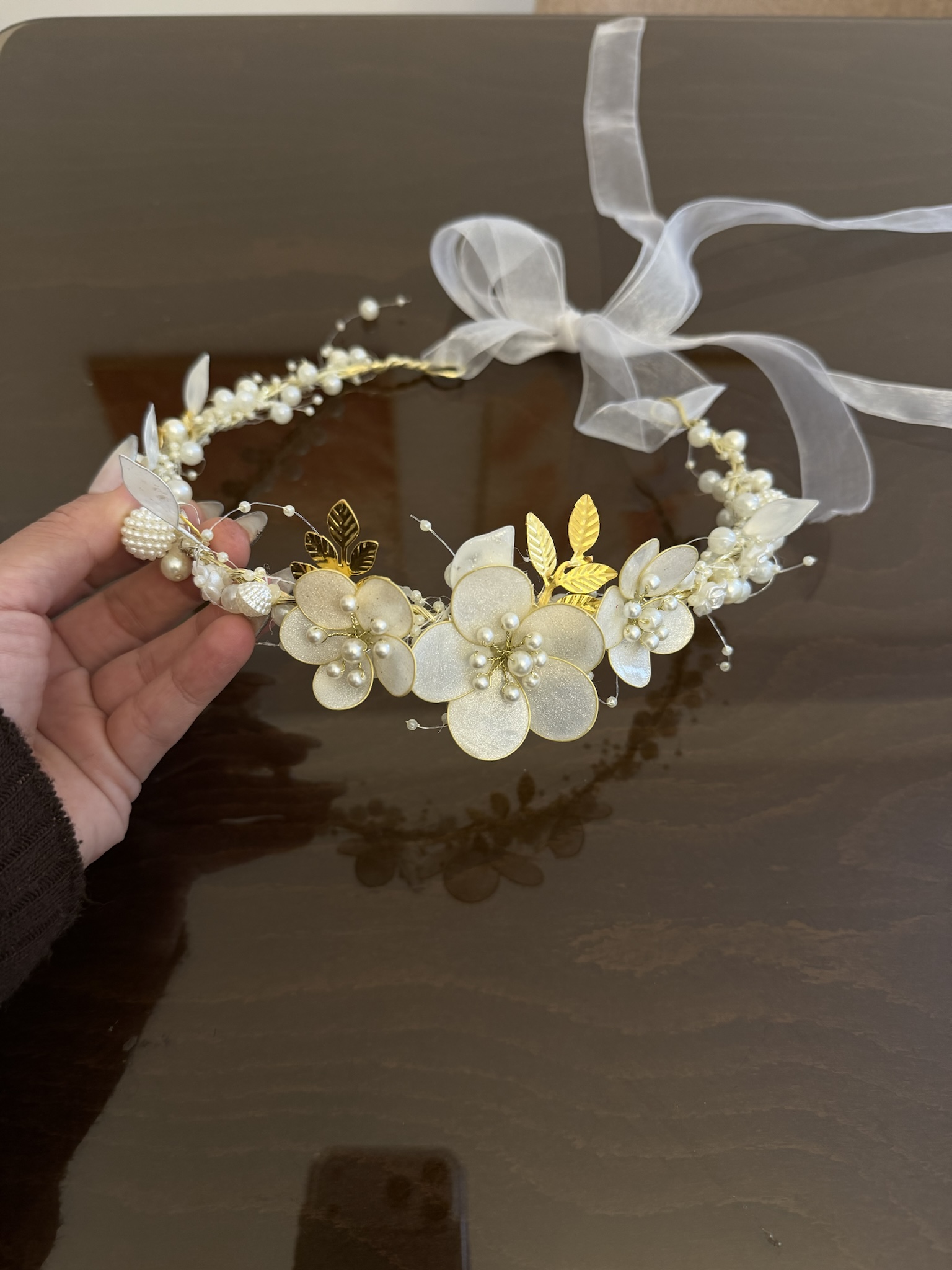 تاج گلدار طلایی با گل شیشه ای برای همه سنین